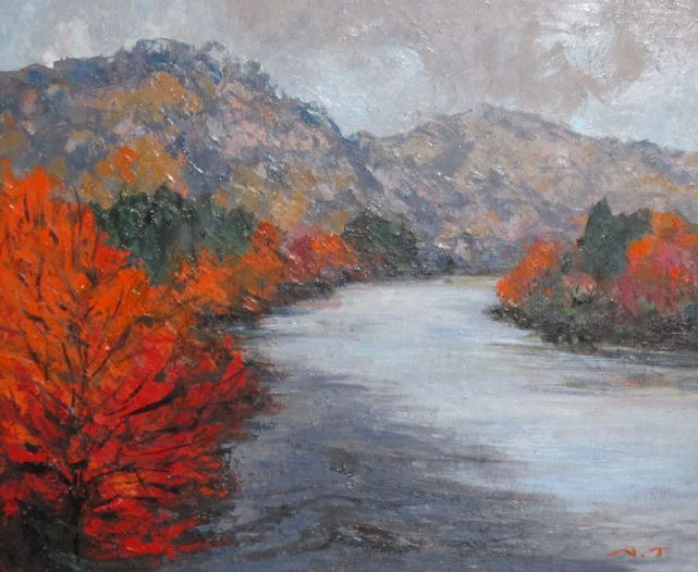 au-50 最上川風景 F20 2017.11.03 (油彩画)