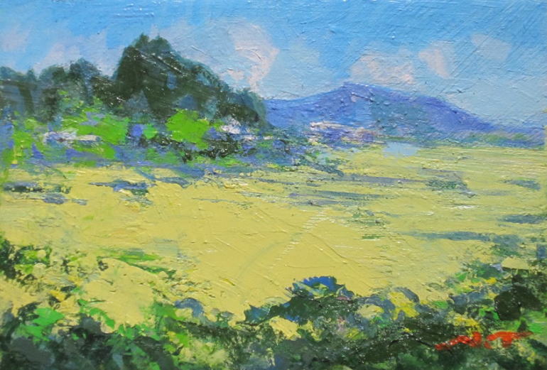 国道112号線から国道287号線を北進して数キロメートル付近から見た、両所高楯山を望んだ風景である。思い切ってレモンイエローを使ってみた。
