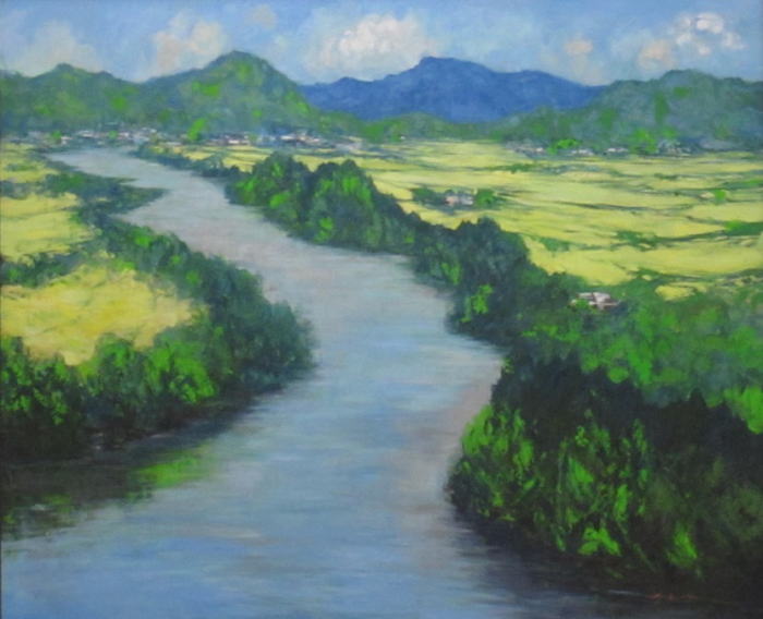 大石田町虹ヶ丘公園展望台から観た最上川風景。多くの先生方が描かれている。新緑の風景もよさそうだ。