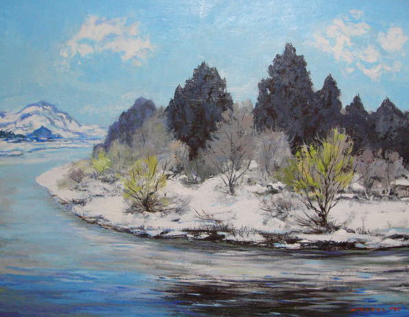 wi-51 春近き最上川風景 F50 2012.01.12 (油彩画)